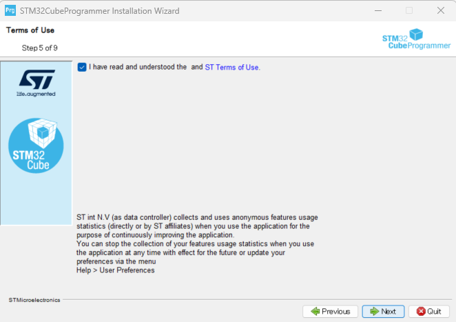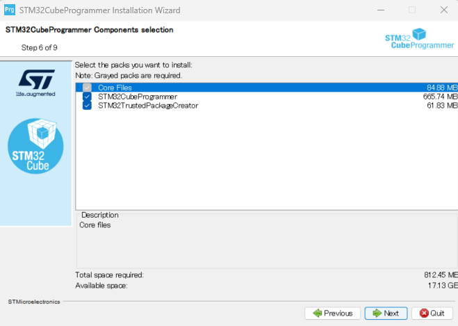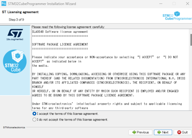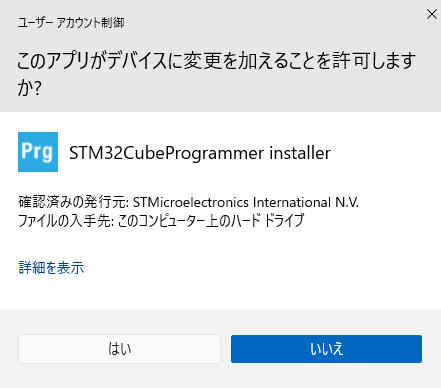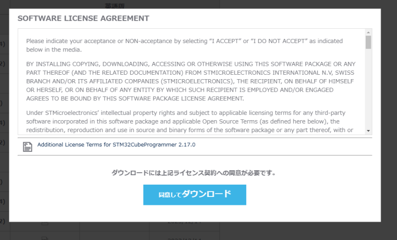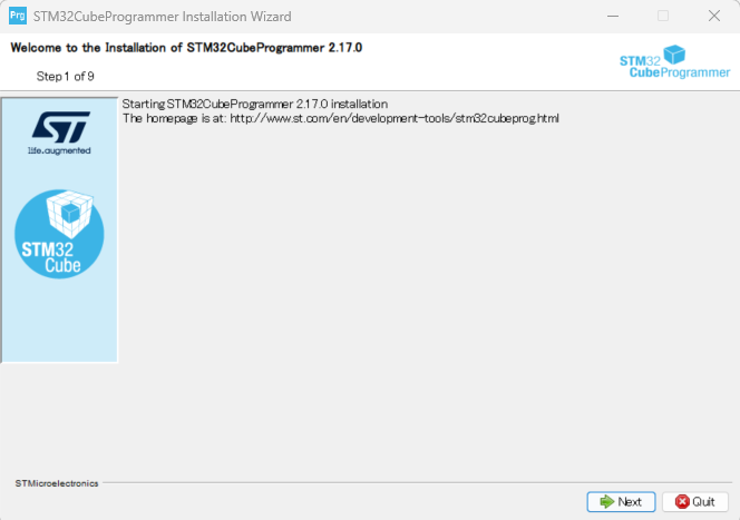 以下のURLより、STM32CubeProgrammerのソフトウェアのインストーラをダウンロードします。