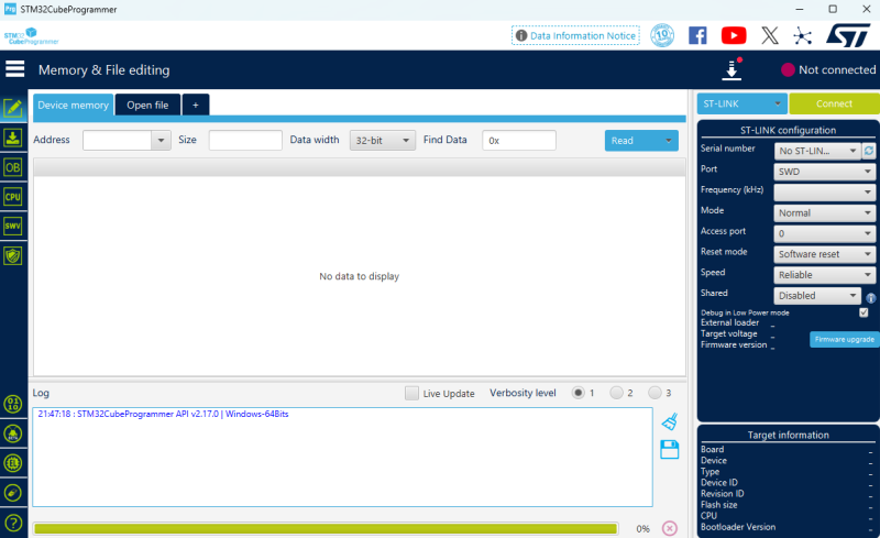 これで正常に STM32CubeProgrammerが起動したことが確認できました。